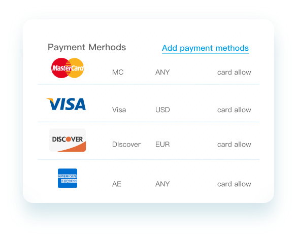 WAIPAY 直连Visa、Mastercard等5大国际卡组织,保障支付的成功率及收单时效性。